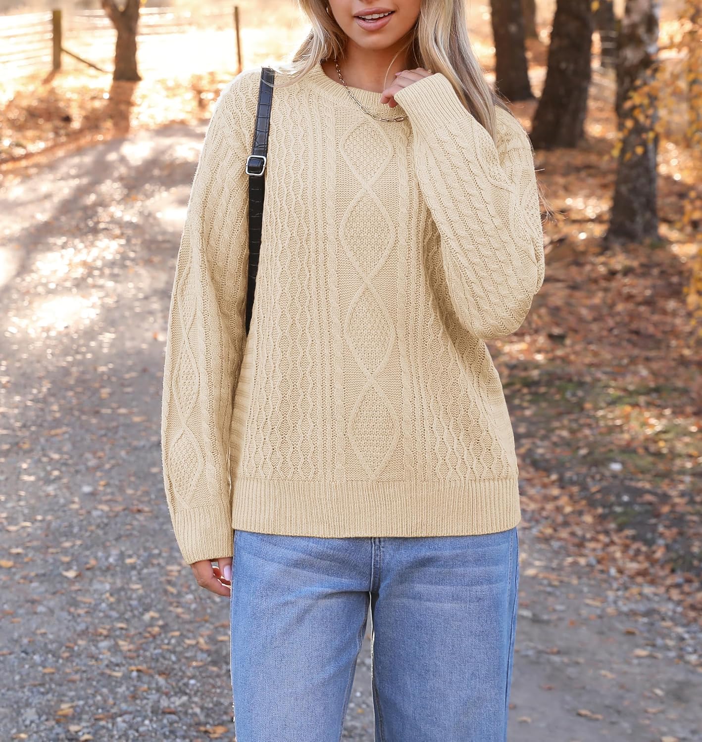 - 【Cable Knit Sweater 】:Cable Knit Sweater / Womens Sweaters / Fall Fashion For Women 2026 / Fall Sweaters For Women 2026 / Women’s Long Sleeve Pullover Tops / Cozy Sweater / Chunky Sweater / Cute Fall Tops / Crew Neck Sweater / Winter Sweater For Women Trendy / Ribbed Cuff / Oversized Fit for One Size Larger / Solid Color.